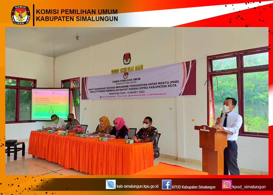 Pamatang Raya- Horas... Horas... Horas... #TemanPemilih, Ketua KPU Kabupaten Simalungun Raja Ahab Damanik didampingi anggota KPU Kabupaten Simalungun Puji Rahmad Harahap, Salman Abror, Fatimah Yanti Sinaga dan Rahmadhani Sari Isni Damanik memimpin Rapat Pleno rutin KPU Kabupaten Simalungun bertempat di Aula Kantor KPU Kabupaten Simalungun, Jalan John Horailam Saragih, Pamatang Raya. Senin (15/11) pukul 10.30 WIB.